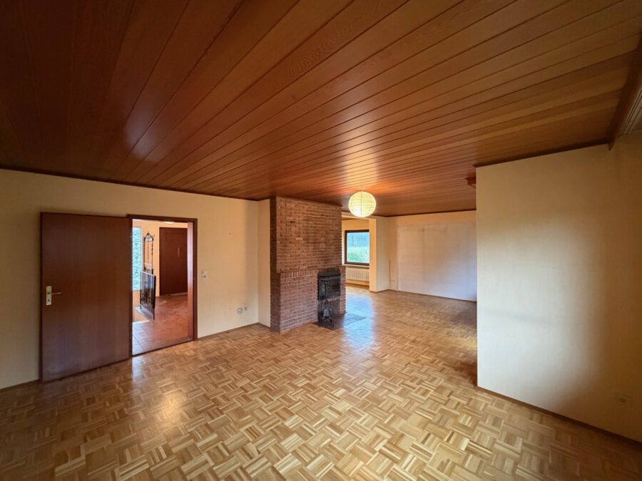 - ca. 35 m² Wohnbereich mit Eichen-Mosaikparkett und Kaminkassette