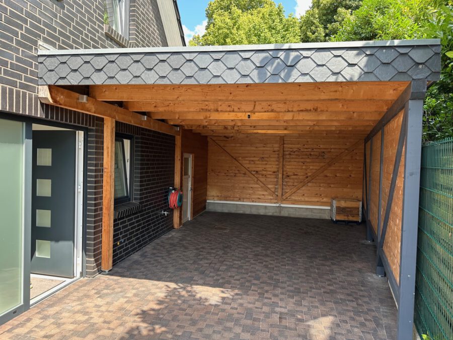 Dach: hochwertige Tondachpfannen der Marke Röben Lugano Basalt.