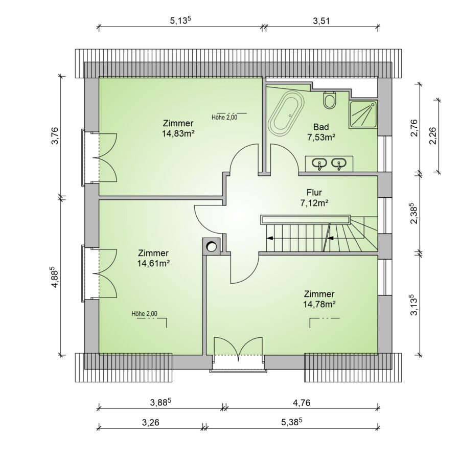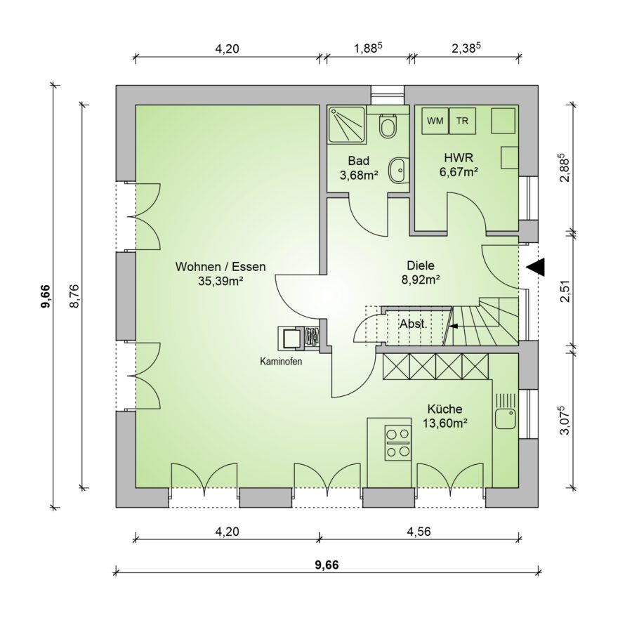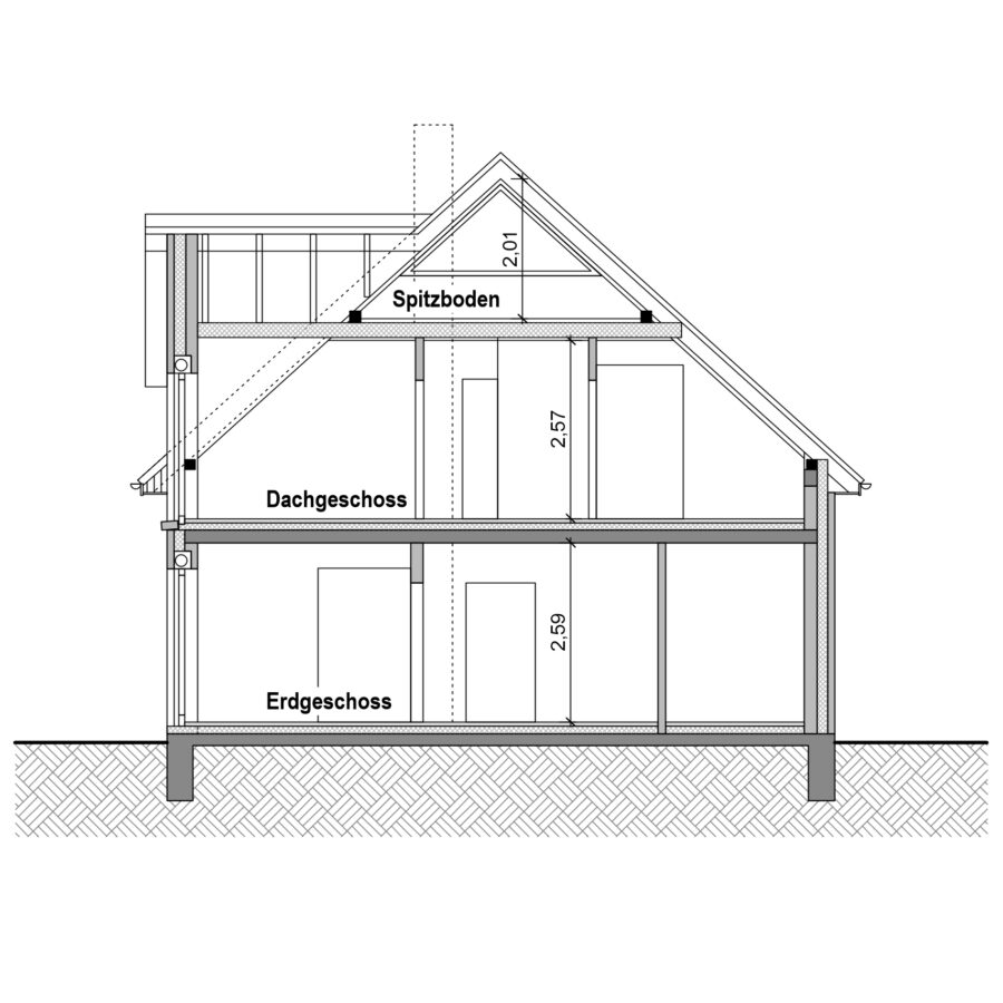 Wandaufbau: die Außenmauern Poroton 17,5 cm, Isolierung 14 cm Kerndämmung;