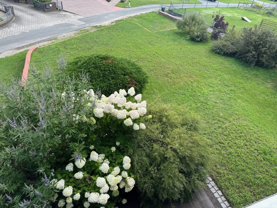- pflegeleichter Garten, überwiegend als Rasenfläche gehalten